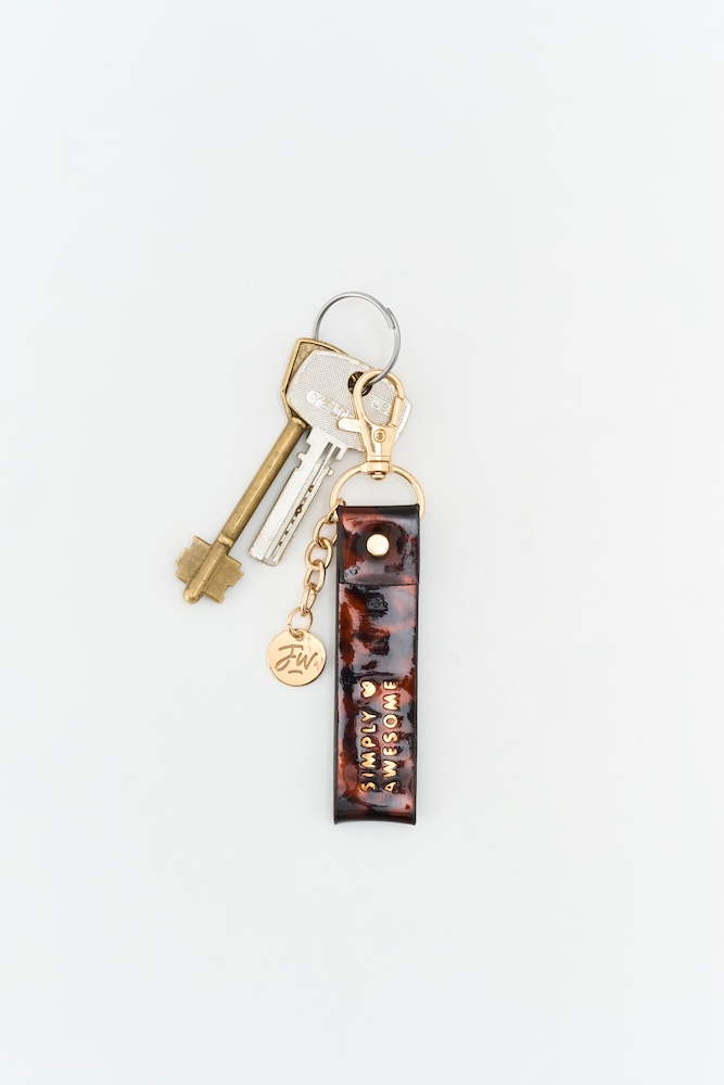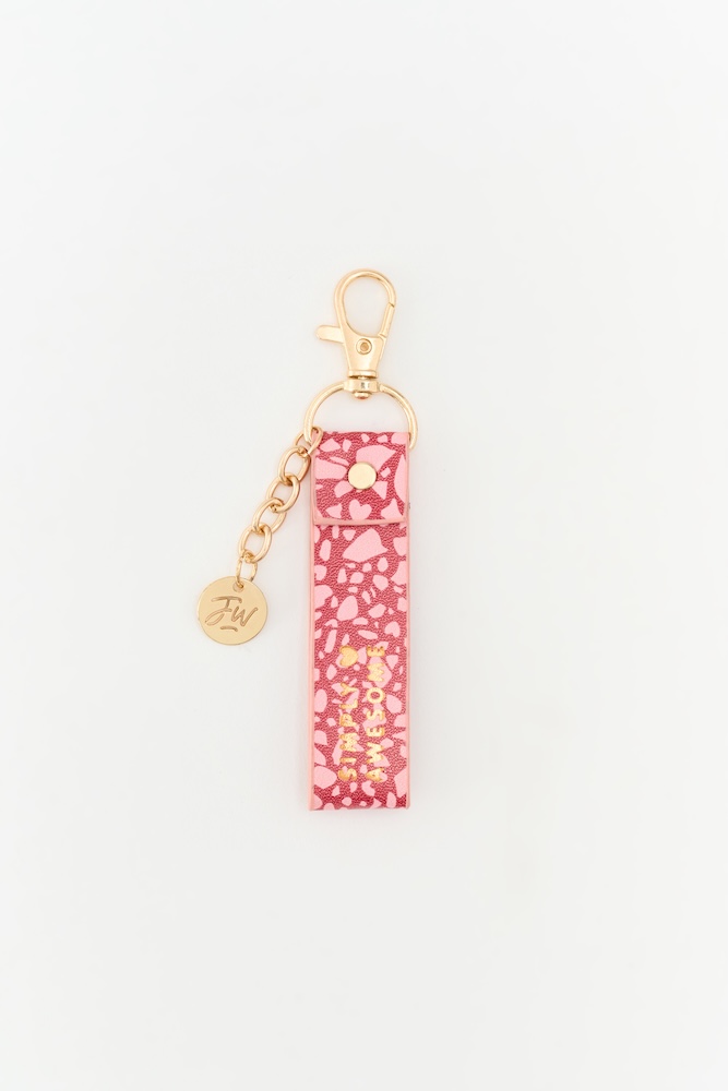 Accesorio colgante de PU con gancho metálico ,charm metálico y detalles en stamping. Idfeal para ponerle onda a tu bolso.