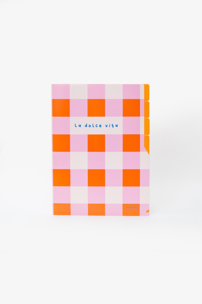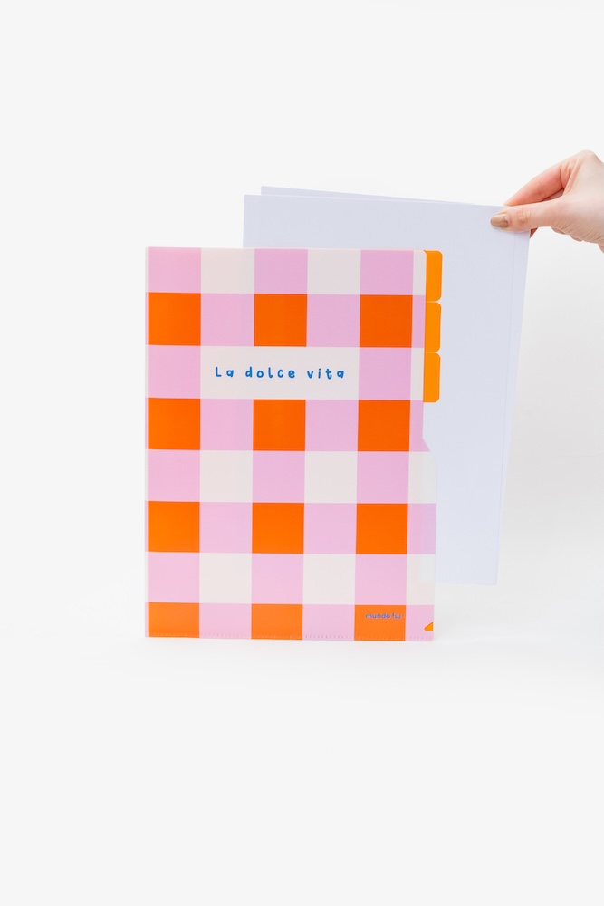 Carpeta A4 con clasificadora en L, con diseños innovadores, perfecta para organizar documentos de manera eficiente. Su estructura con compartimentos facilita la clasificación y el acceso rápido a los papeles