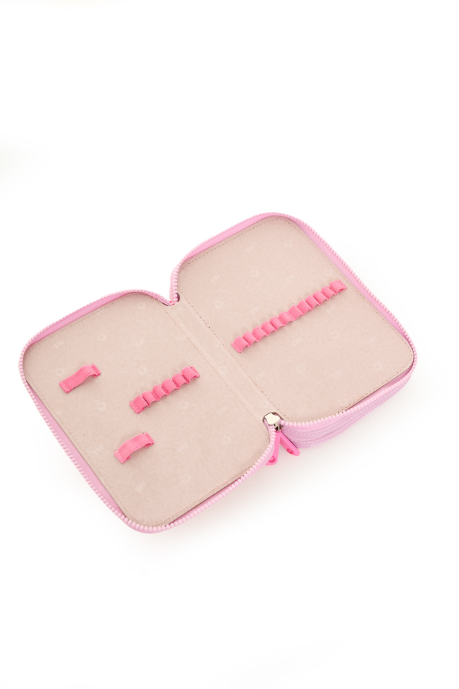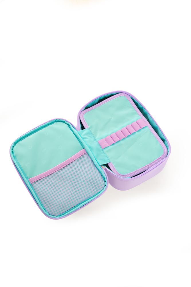 Moderna y brillante, confeccionada en textil holográfico impreso que la hace destacar por su estilo único. Cuenta con 28 elásticos regulares y bolsillo de red para una organización práctica y ordenada.