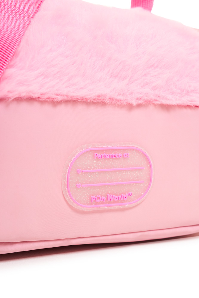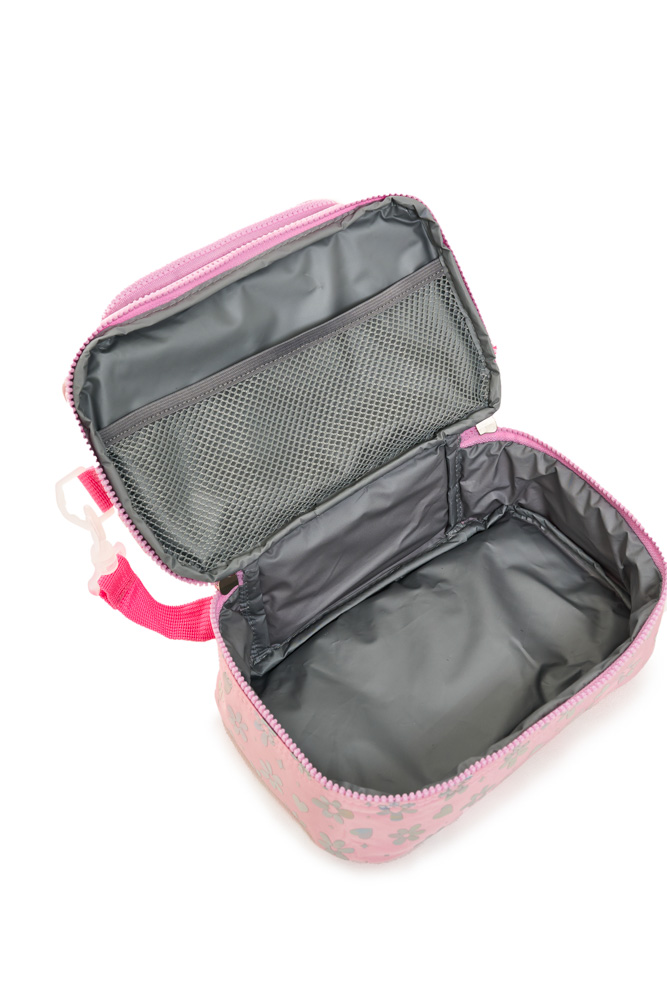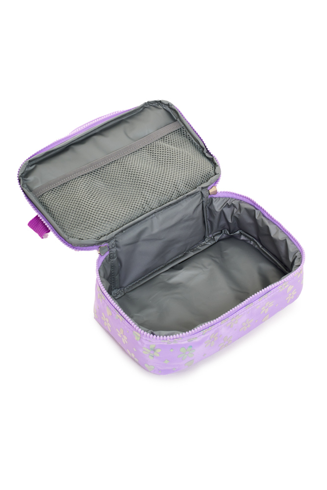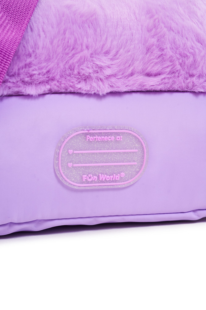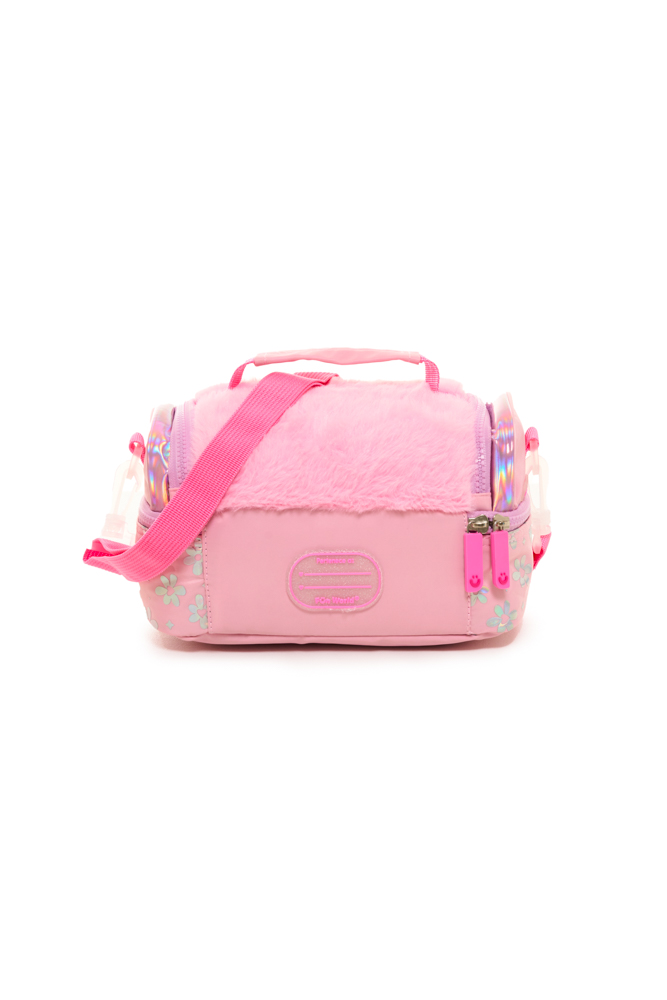 Lunchera lovely Confeccionada en tela de peluche y tela holográfica estampada, combina textura, brillo y practicidad en un diseño moderno. Dimensiones: 24x14,5x13,5 cm. Compartimento superior con apertura frontal. Compartimento secundario con apertura 180°. Correa corta de mano. Correa de hombro ajustable y desmontable. Interior impermeable y aislante.