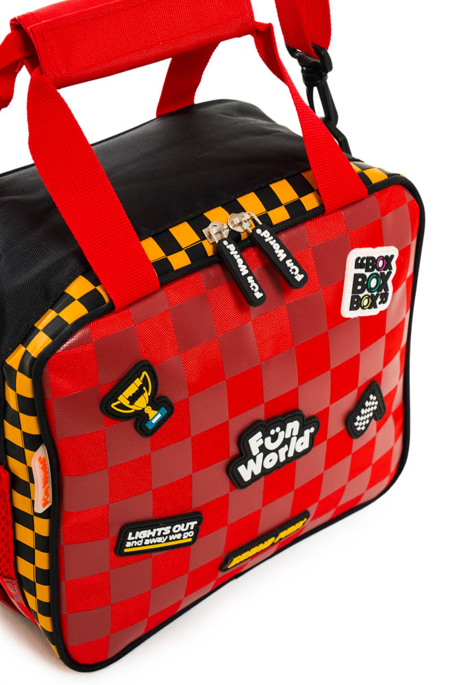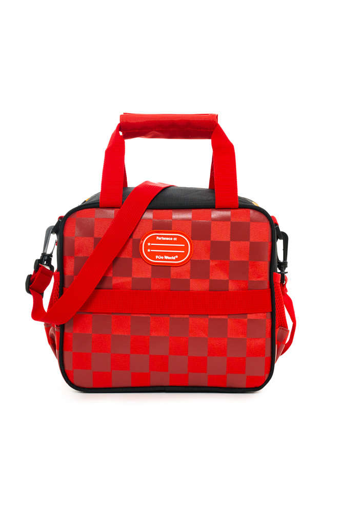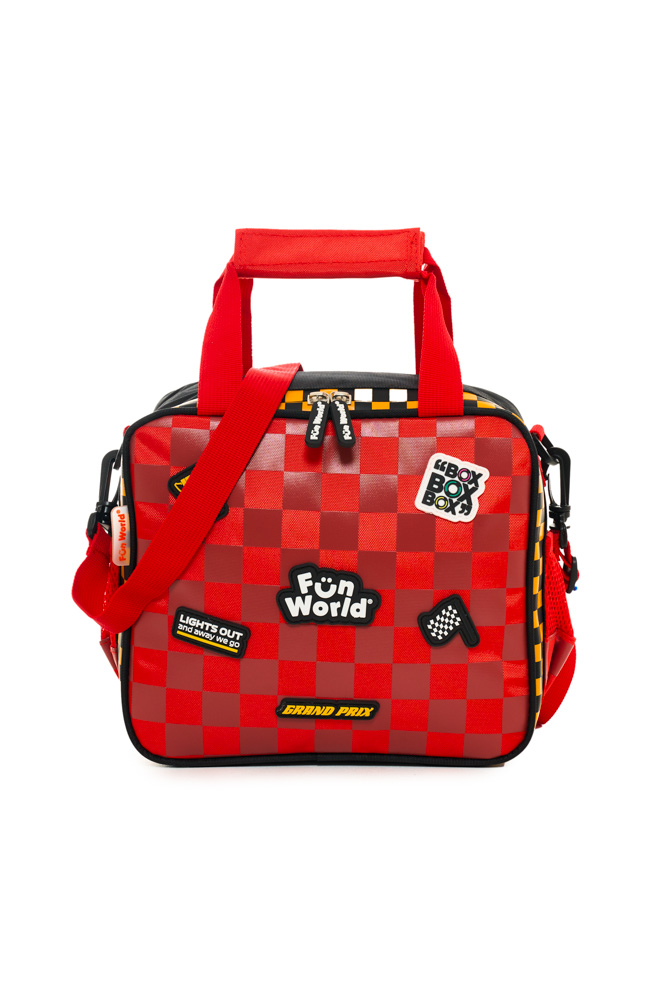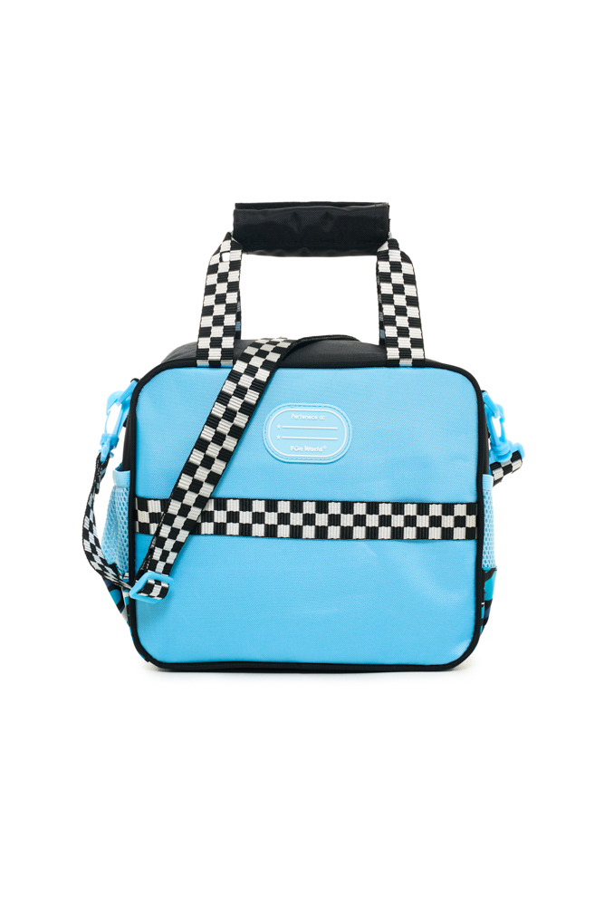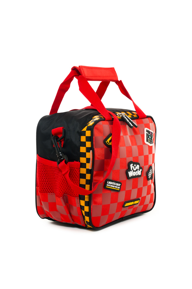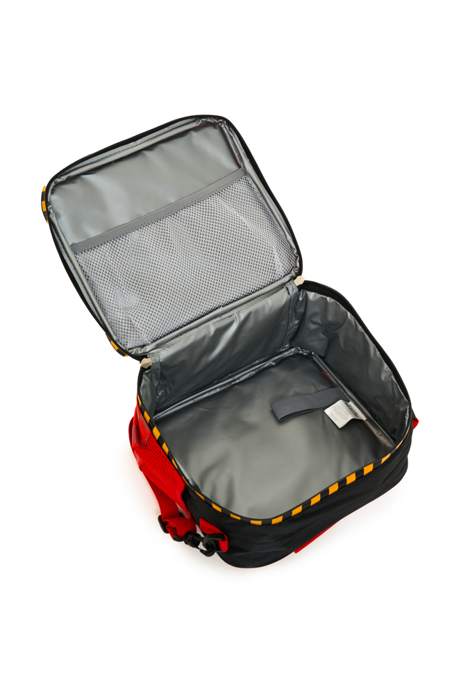 Tiene una dimension de 23x20x12 cm. Apertura 180°. Dos correas cortas de mano con velcro. Correa de hombro ajustable y desmontable. Cinta trasera deslizable para sistema trolley. Interior impermeable y aislante, con elástico para botella y bolsillo de red.