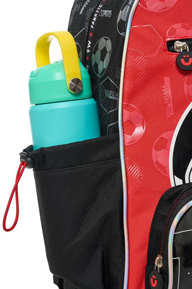 Diseñada para brindar practicidad y estilo, incluye bolsillo frontal de PVC, lunchera termoformada desmontable con interior aislante térmico, varios compartimentos y bolsillos, y dos bolsillos laterales para colocar la botella.