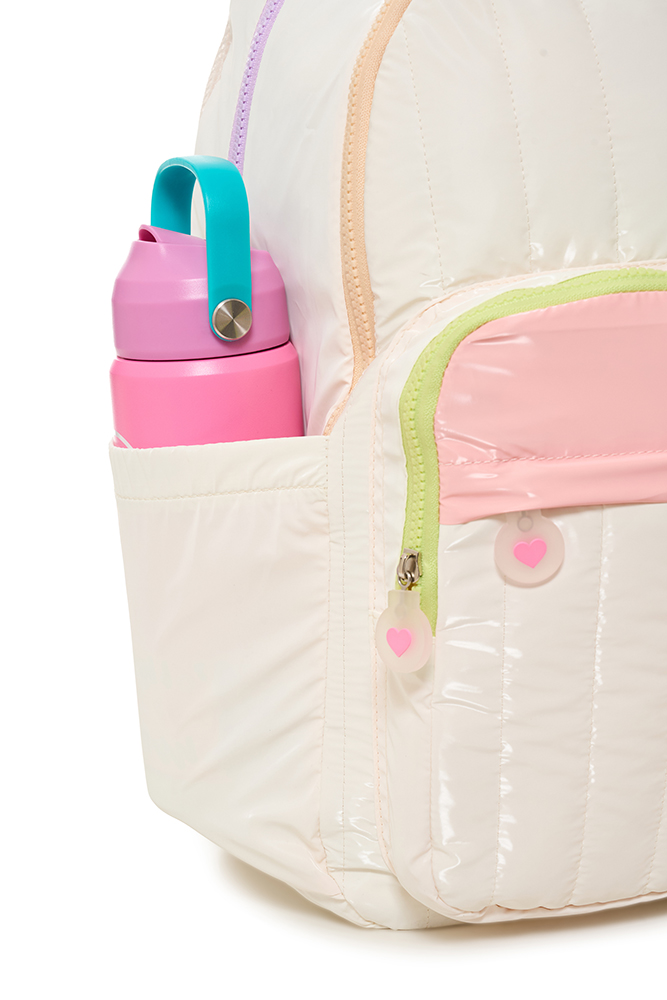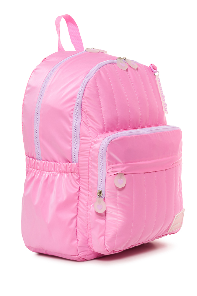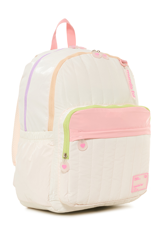 Mochila Twist Moderna y elegante, combina diseño y funcionalidad para el uso diario. Cuenta con un compartimento principal con bolsillo interno para notebook, bolsillo con cierre y clip para llaves, además de un segundo compartimento. Incluye dos bolsillos frontales, dos bolsillos laterales de tela con elástico y está confeccionada en tela matelassé brillante. Disponible en tres variantes de color: rosa, crema y negra.