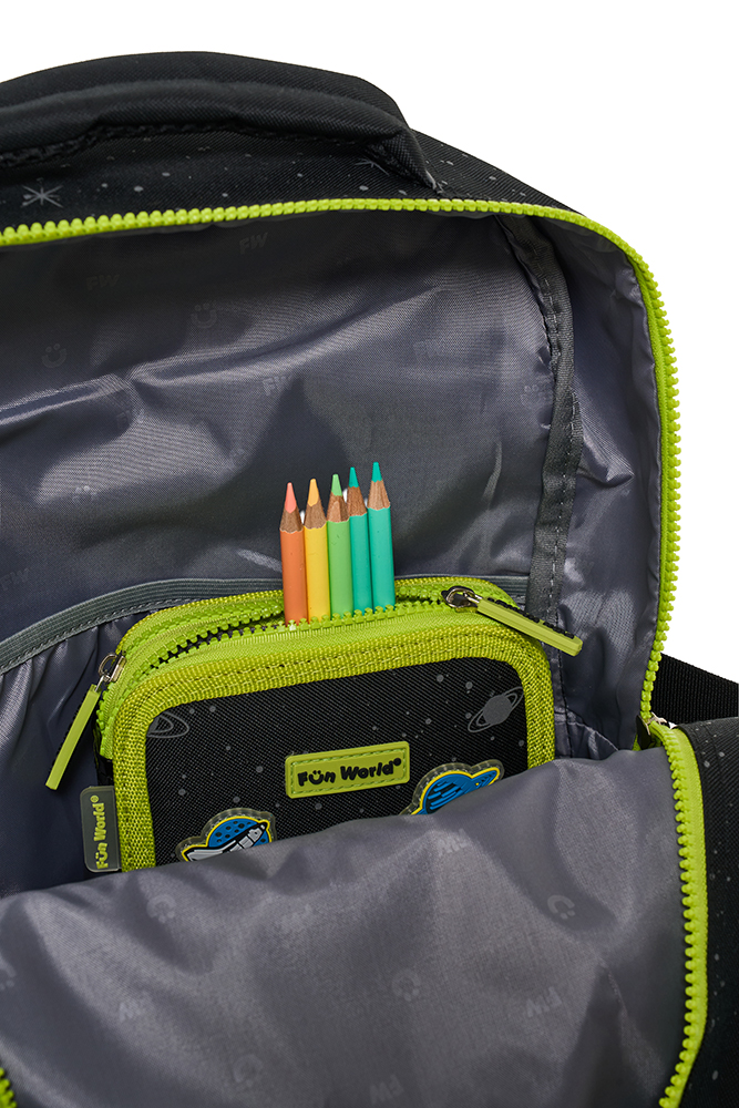 Mochila 18″ Fun World con carro desmontable Space glow in the dark