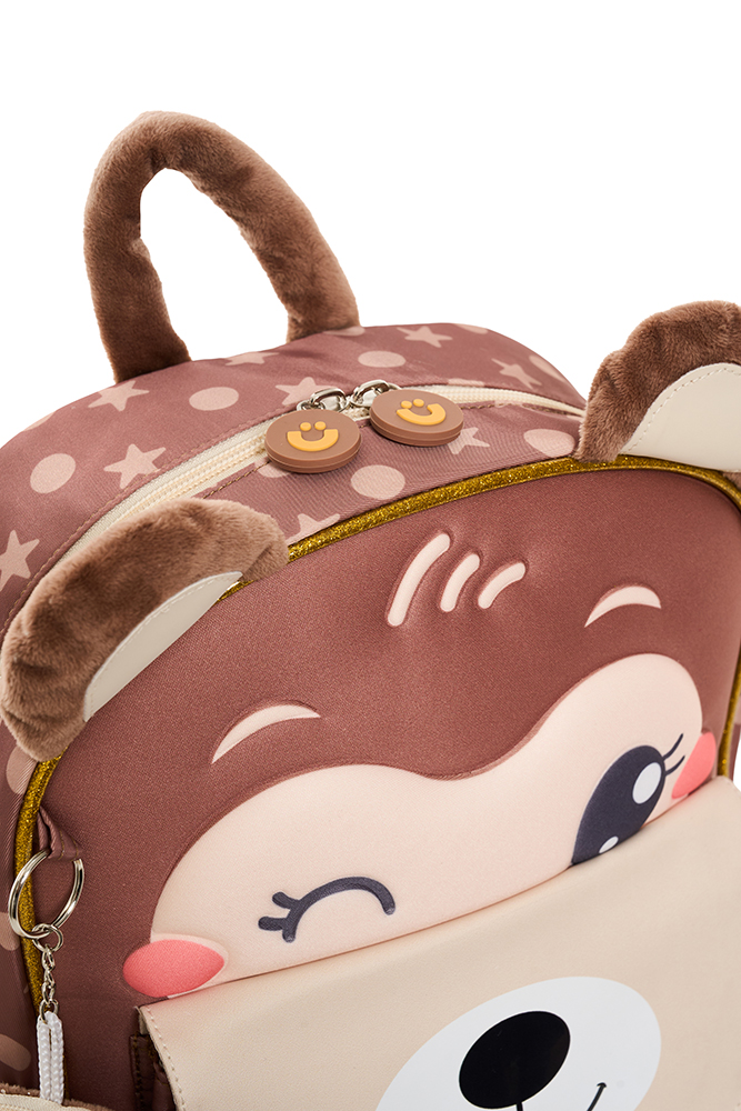 Mochila 12” Kinder Animalitos Diseñada especialmente para los más chicos, presenta 5 modelos distintos súper tiernos. Cuenta con frente termoformado, detalles en 3D, accesorio tipo llavero y manija acolchada suave para mayor confort. Tiene correa de pecho ajustable, que brinda mayor sujeción, estabilidad y comodidad para los más pequeños. Ideal para acompañar sus primeras aventuras con alegría y diversión.
