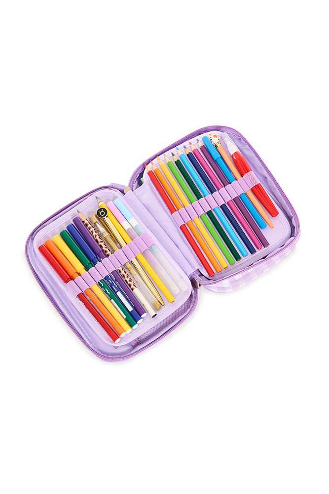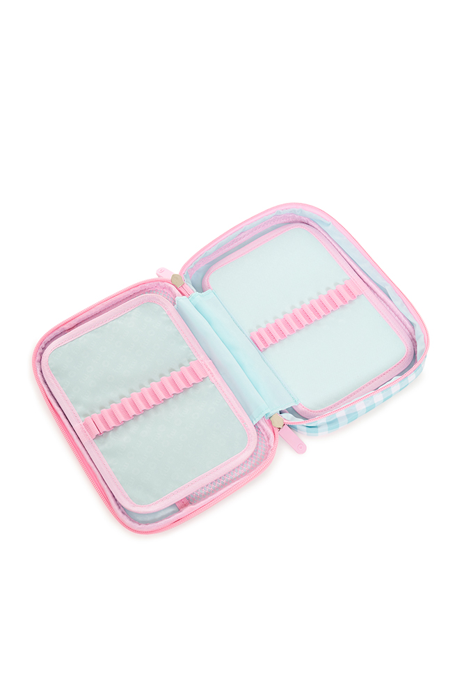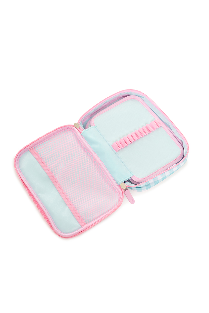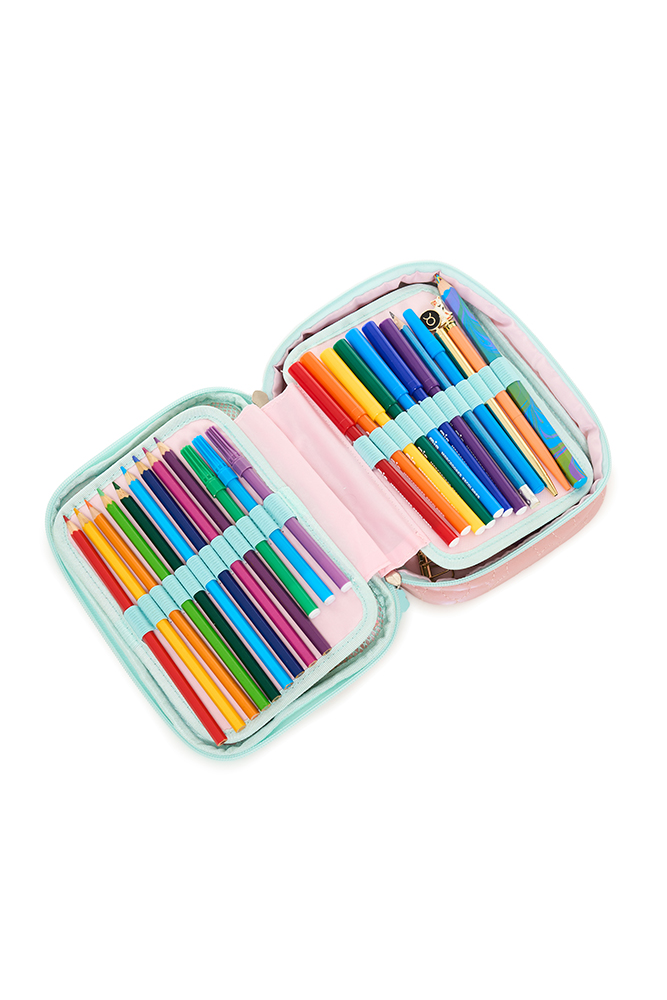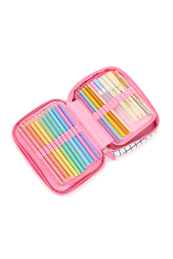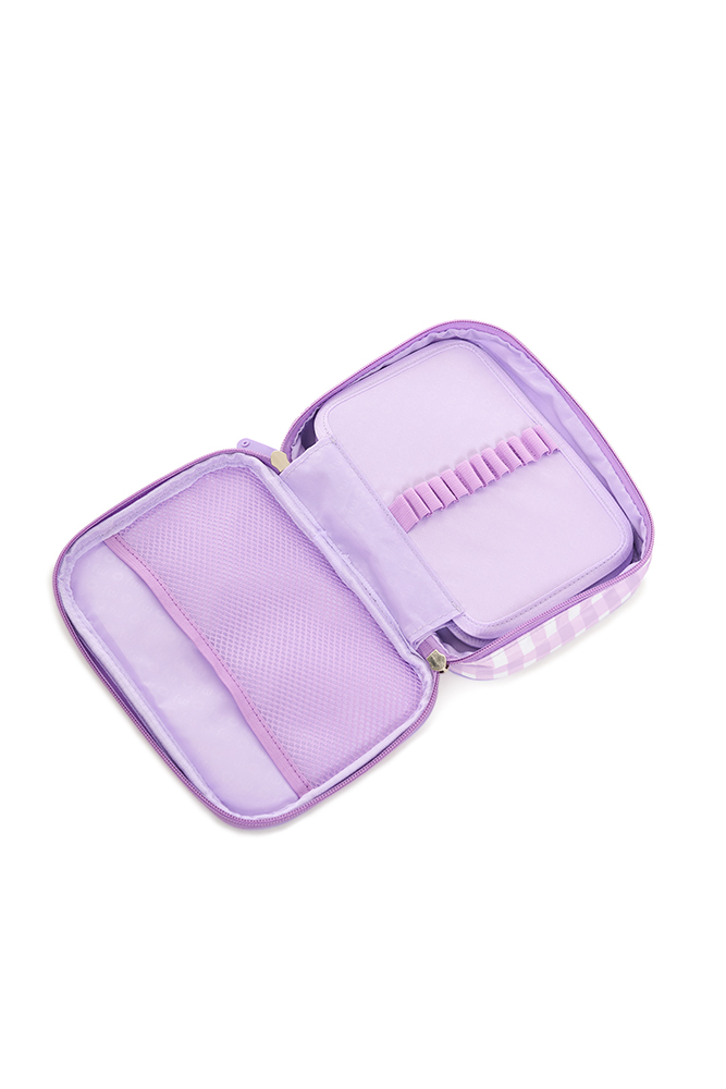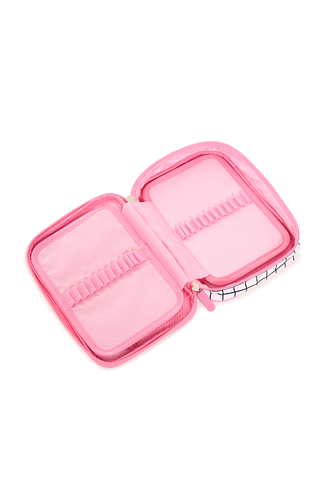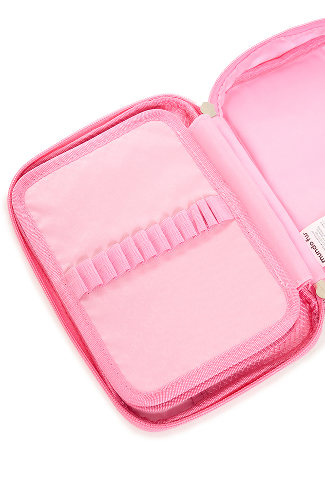 Colorido y funcional, ideal para mantener todos tus accesorios en orden. Cuenta con 1 compartimento principal con cierre de nailon y doble tirador, división interna de dos pisos, bolsillo de red y 48 elásticos regulares que permiten una organización práctica y segura. Perfecto para llevar a todos lados con estilo y comodidad. Disponible en 4 variantes de color.