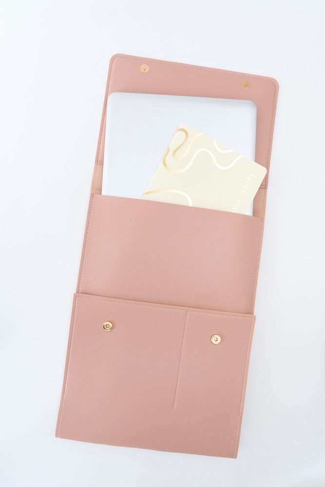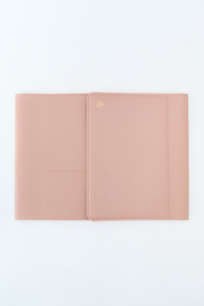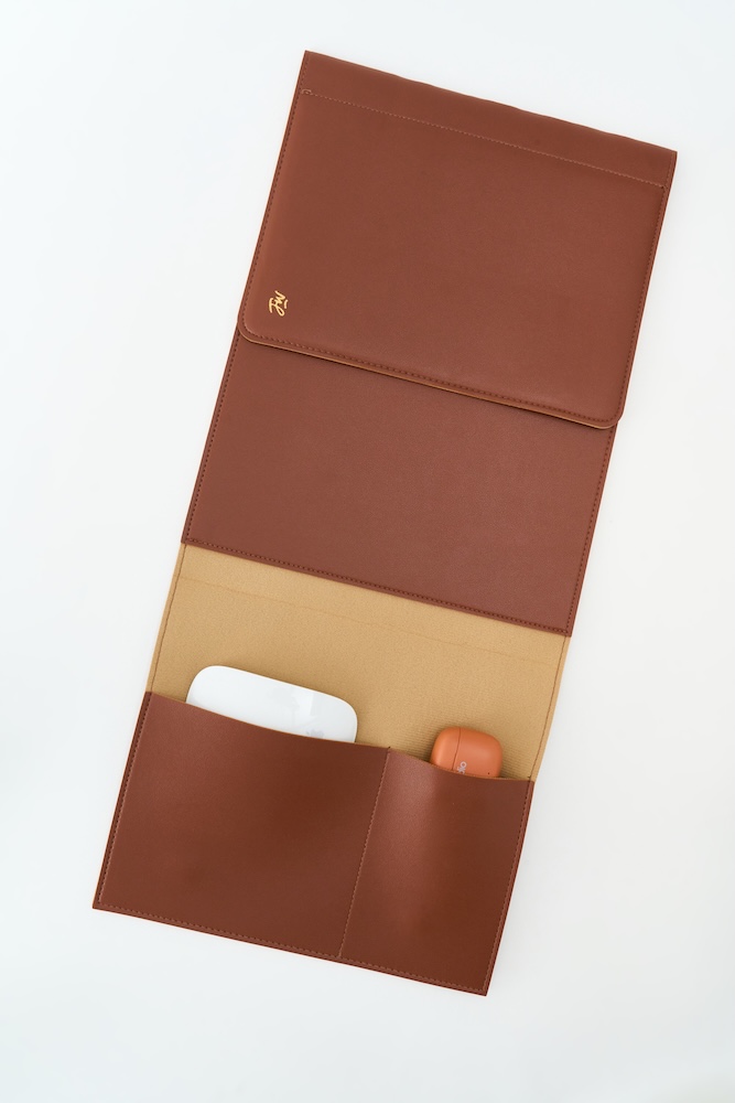 Funda para notebook de hasta 14". Tamaño plegado de 36 x 27 cm, con su material en cuero PVC. Incluye bolsillos y espacio para el mouse